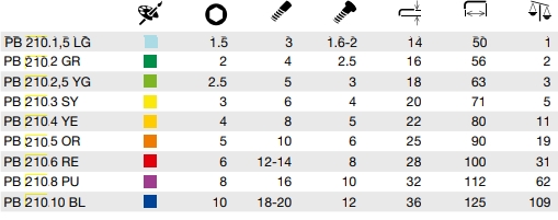 PB 210 RB RainBow key L-wrenches • for hexagon socket screws • chrome-plated and powder-coated, color coded by size, quick access to the right tool • precisely chamfered edges, ensures easy insertion into screws • special alloy based on spring steel, exceptional elasticity coupled with high grade hardening • laser-marked serial number, lifetime guarantee