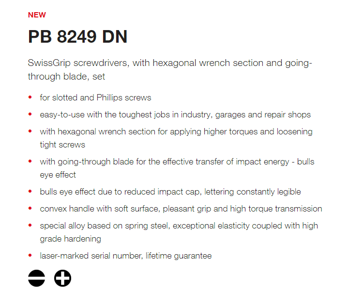 SwissGrip screwdrivers, with hexagonal wrench section and going-through blade, set for slotted and Phillips screws.